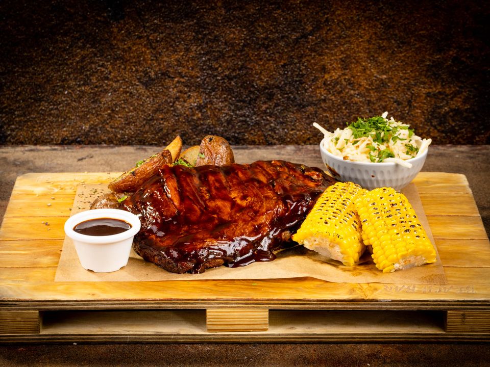 roll, pulled pork, becon, cheddar, pickled cucumber, tomato, pickled onion, BBQ sauce, chips