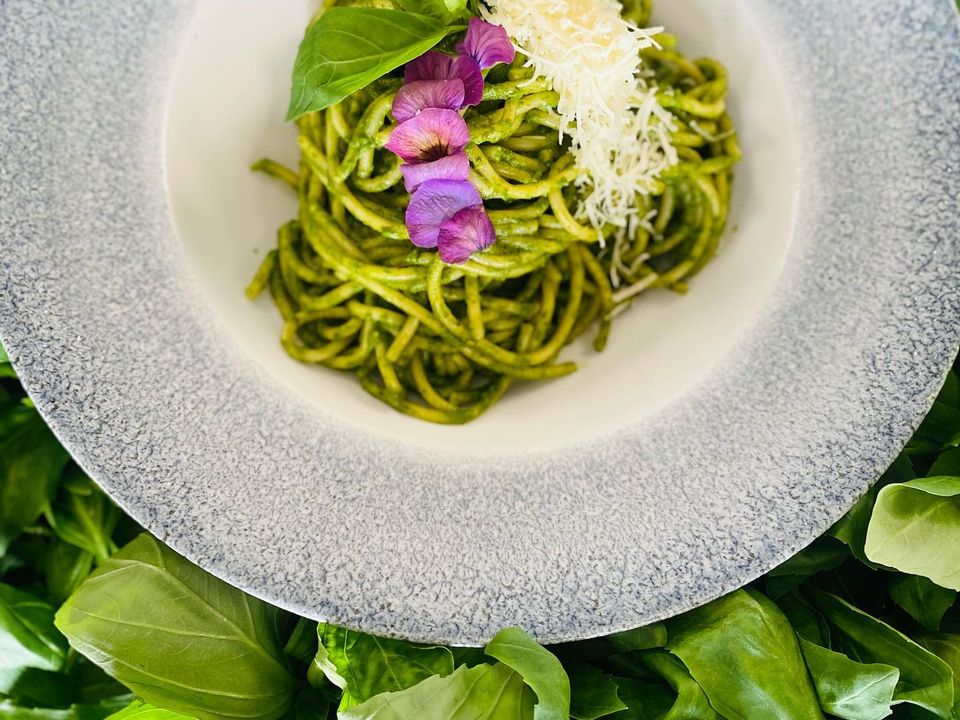 sauce, mozzarella cheese, buratta cheese, pesto, arugula